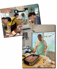 この写真は、100人分のオムライスとスープの下ごしらえ中。様々な世代の方と交流し、刺激をもらっています。これからの日本を支える子供に感謝の気持ちを!